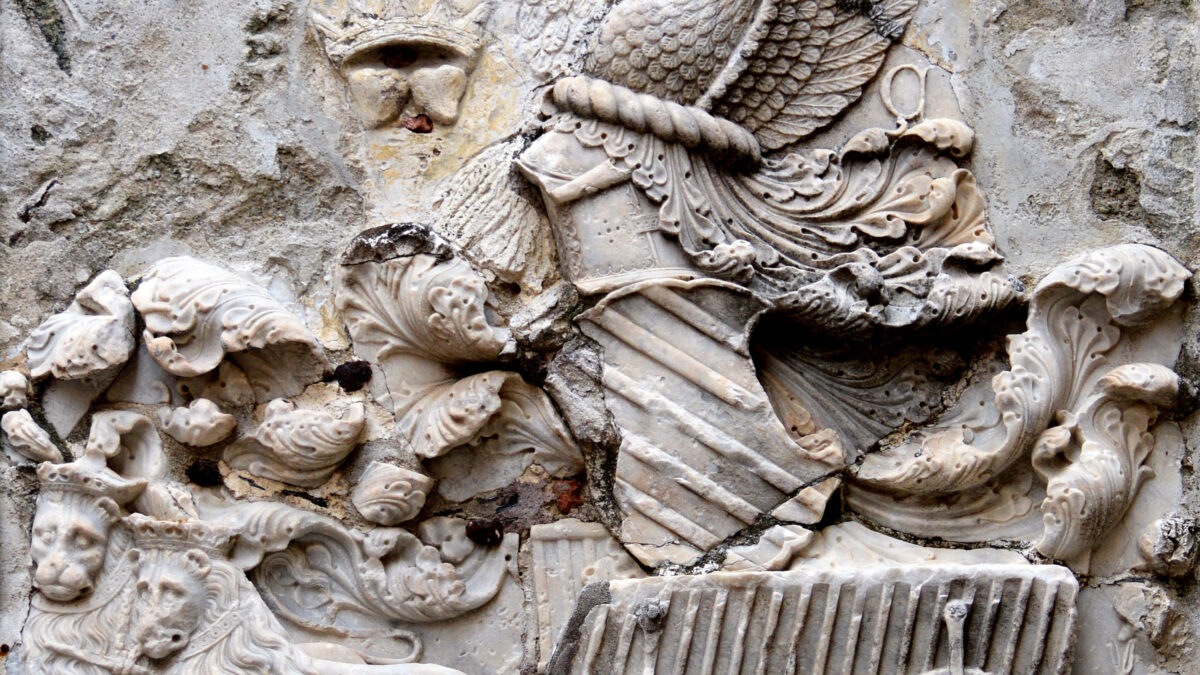 In Piazza San Biagio a Finalborgo, sul fronte interno delle mura medievali, si può osservare uno splendido bassorilievo in marmo bianco raffigurante l’arma araldica dei Del Carretto.